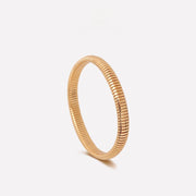Using Bulgari’s 1950s Tubogas technique, the continuous loop design offers a sleek, comfortable fit. The 0.8cm wide bracelet makes a bold statement on its own or when stacked with the matching gold cuff for added impact.
