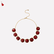 Handcrafted from 9 circular enamel pieces, this necklace seamlessly links together, offering a striking presence that beautifully complements the neckline with its artistic flair.